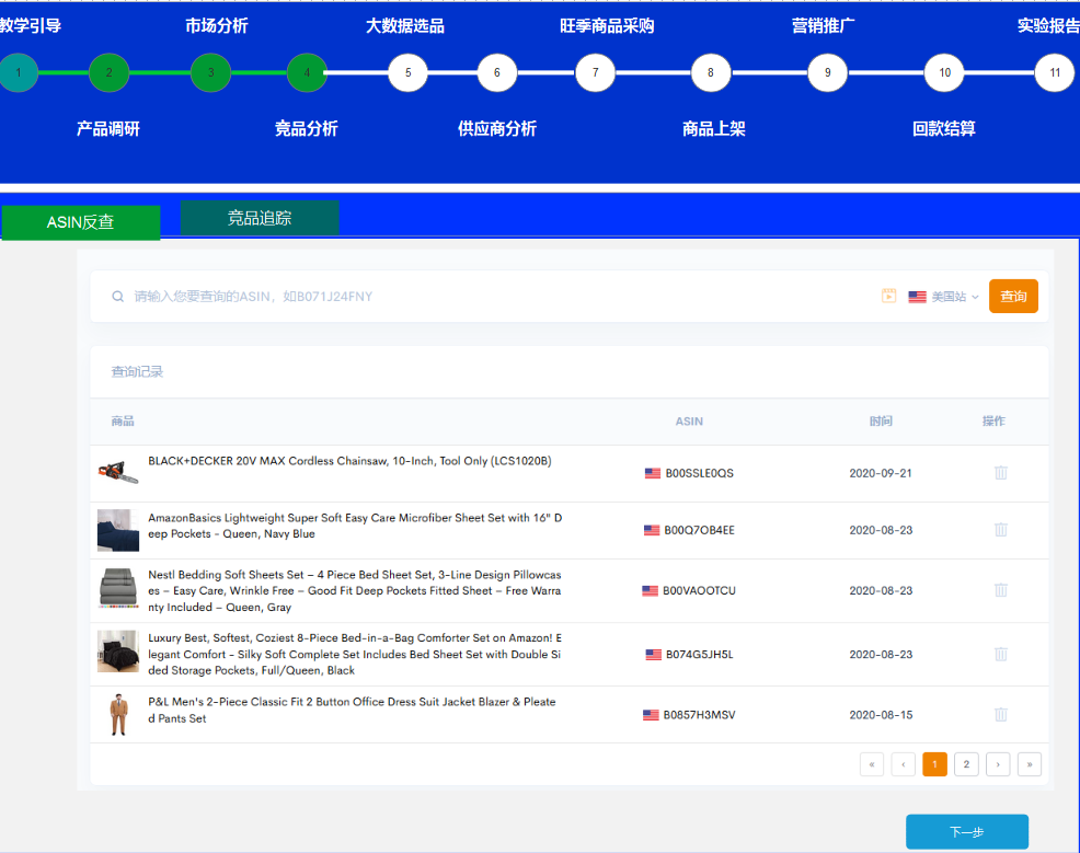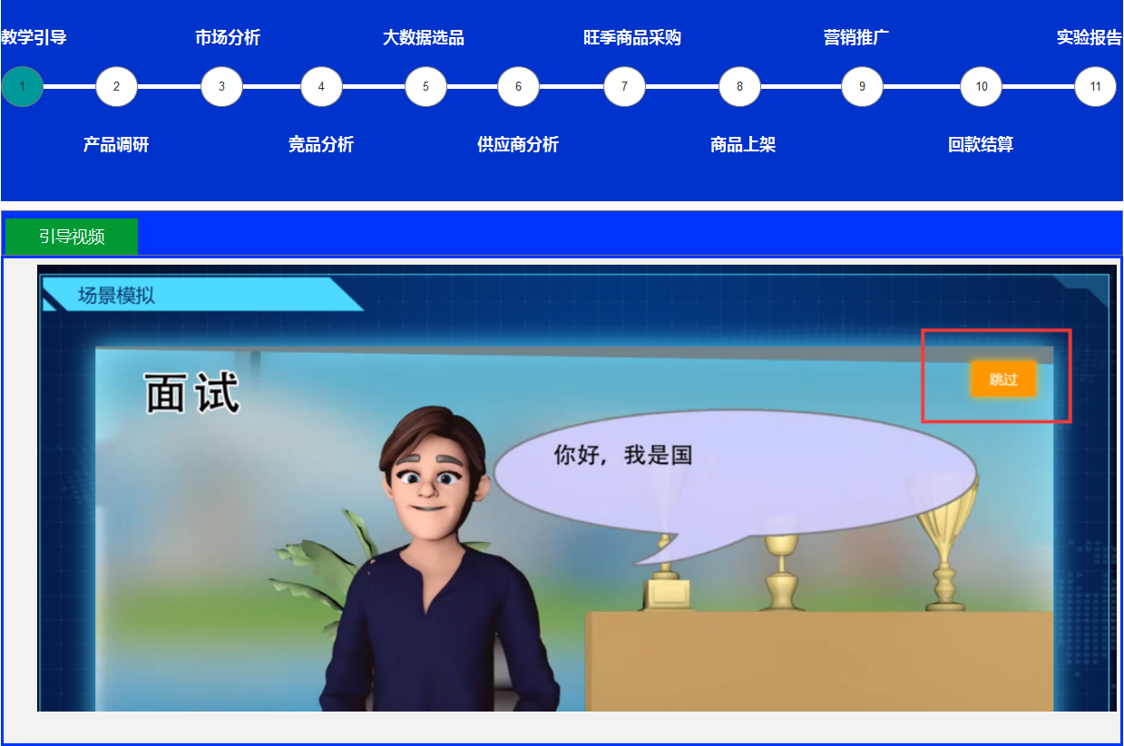 2-8实验方法与步骤要求(学生交互性操作步骤应不少于10步) (一)实验方法描述: 本项目是基于行业数据、店铺数据及场景化教学模式构建的一体化实践教学平台,依托前沿科技大数据分析等技术融入实践教学,利用人机交互等多种技术手段,以智能选品、教学管理等为工具,以跨境新商业岗位工作内容,用人标准为培养路径,为学生提供行业认知、经营体验、岗位体验等教学方案。学生交互性操作步骤说明如下: 1)教学引导 学生登录系统,阅读实验简介、学习相关知识,掌握虚拟仿真实验的相关实验背景、实验目的、实验内容、实验知识点,进入实际实验流程。各个步骤均含有相关的流程知识点认知环节,采用“场景模拟+游戏通关”的方式,检验学生对基础知识点的掌握情况,也使学生能对该流程有一个基础的了解。