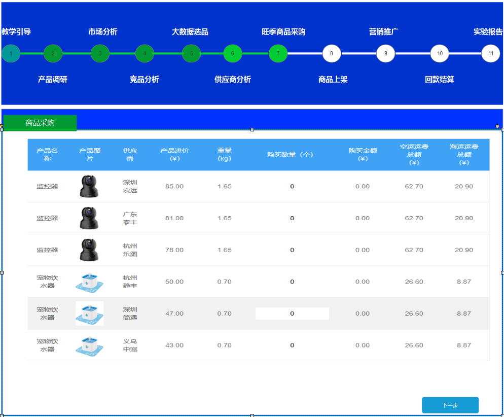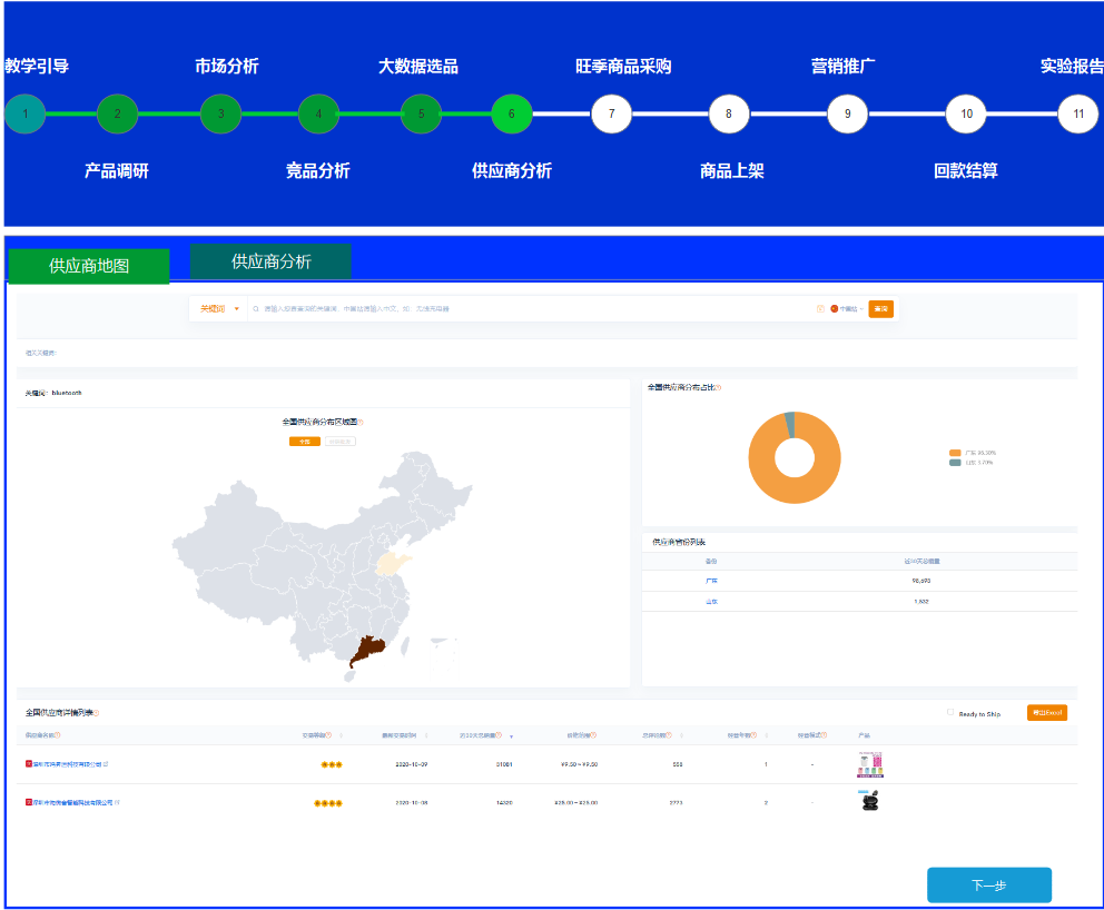 图5 大数据选品 3)基于大数据的供应商分析与产品采购 结合真实用户数据,进行供应商分析与选择,完成产品的采购。