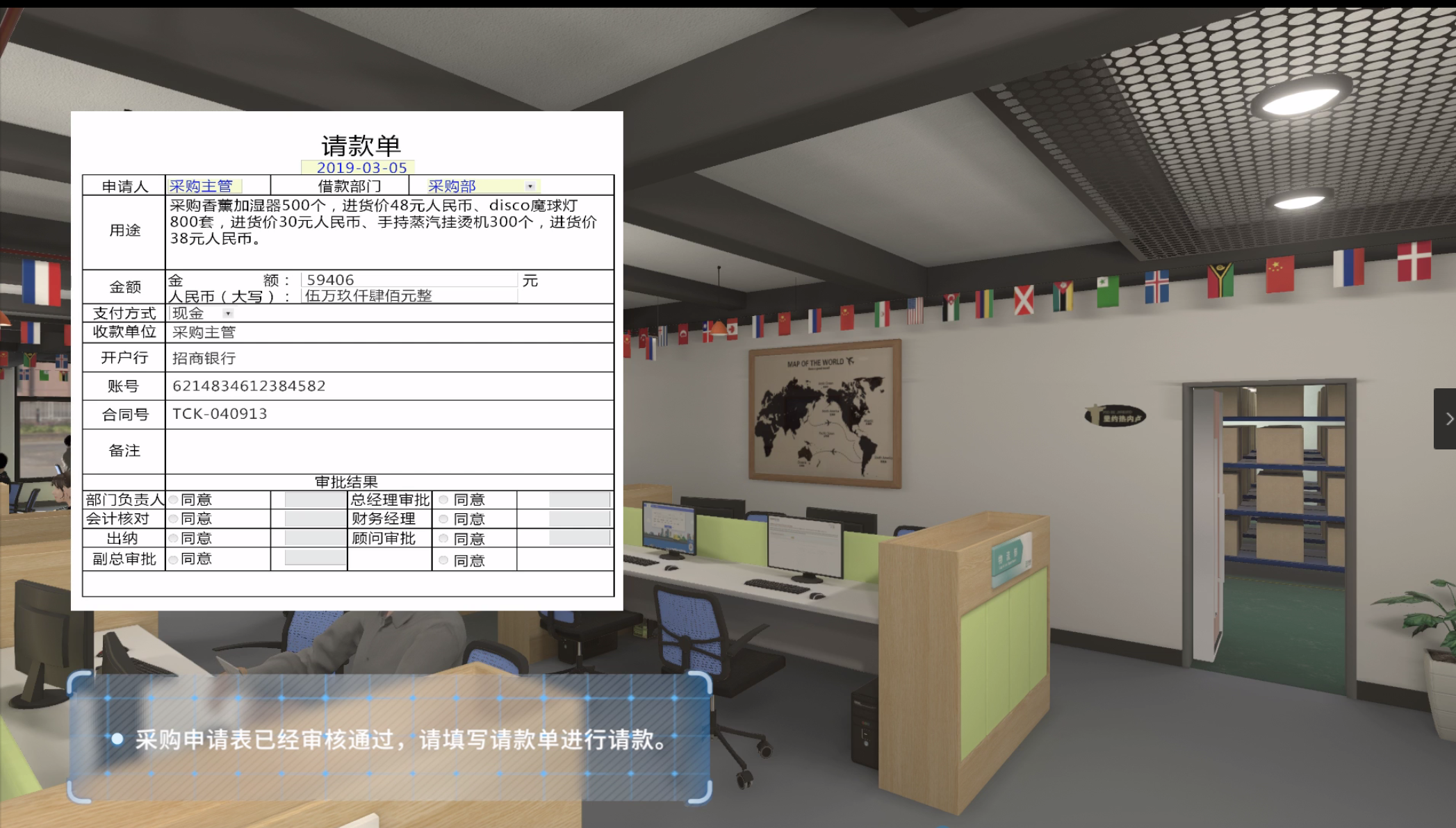 图11 回款结算 7)完成实验,返回主系统,查看实验报告评分 系统自动记录学生在实验过程中,完成认知、考核和任务的相关情况,并最终给出实验评分。