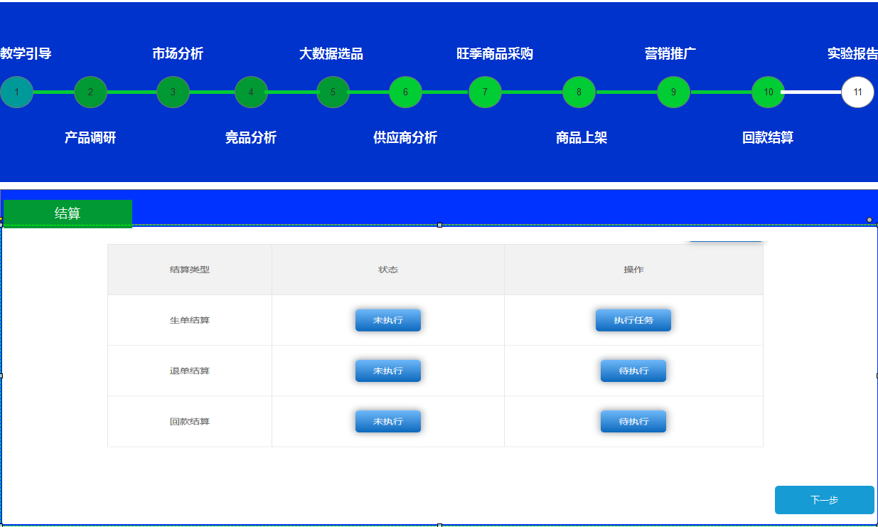 2-10考核要求 实验分三种类型进行综合考核,分别为基础知识点认知,实验任务,以及实践基础考核。 基础知识点认知占30%,实验任务占50%,实践基础考核占20%。 (2)评分细则 1)基础知识点认知考核:由实验指导老师对跨境电商知识、软件学习注意事项进行讲解,系统根据学生在线互动频率及学习内容进行相应的赋分,在完成基础知识学习后,学生可进入后续的学习任务。 2)实验任务考核:学生需要完成各环节的实践任务,完成考核后方可进入后一项的实验内容,实验任务环环相扣。 3)实践基础考核:在部分实践环节中,系统设置了实践考核的模块,在学生完成单项模块的学习及任务后,学生还需要完成系统的流程考核,以巩固实践结果。同时设定了完成时间,如果在限时内没有正确完成考核,或中途退出考核模块,学生在该考核模块的评分将为0。 |